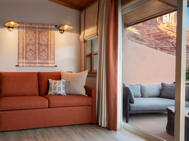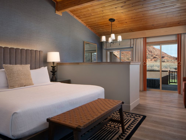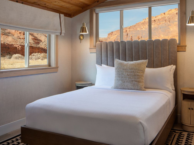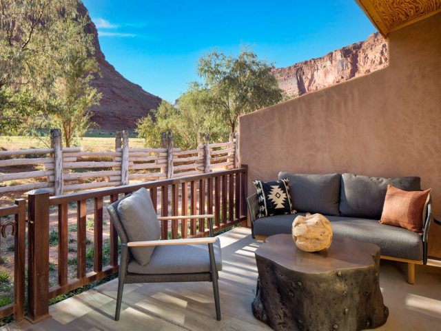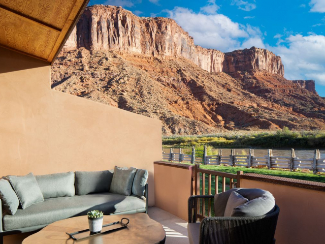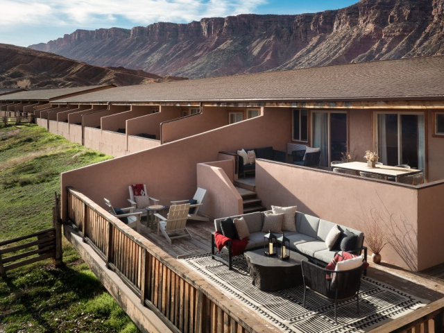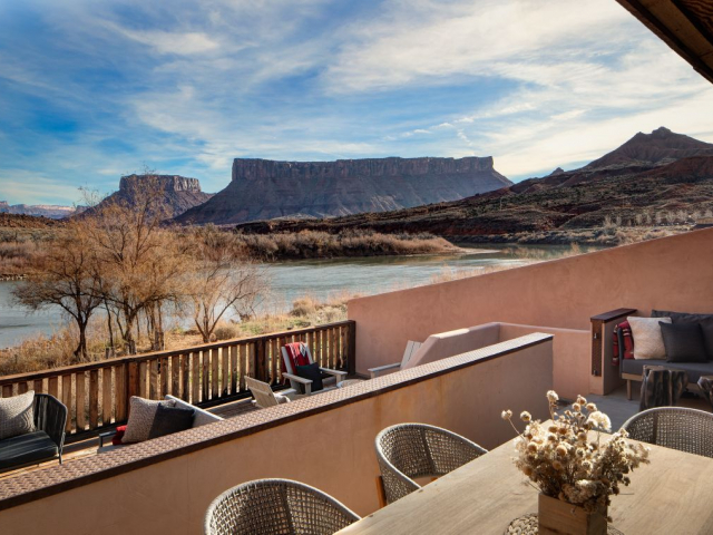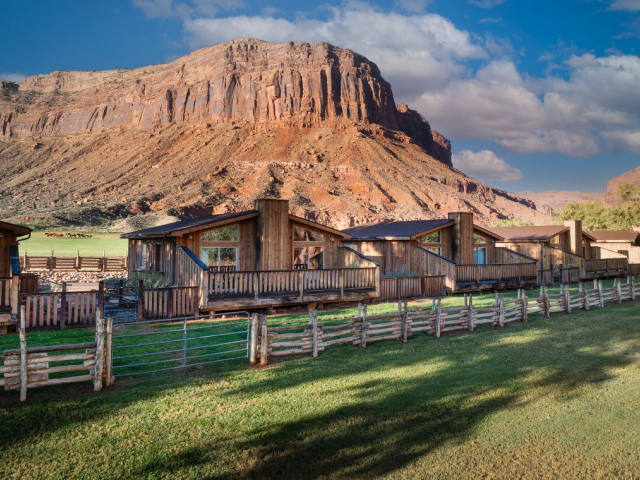 With a stunning backdrop of the dramatic cliffs, the award-winning Red Cliffs Lodge Moab in Utah is situated in an ideal location for those wanting to explore Moab. The hotel is just a short 30-minute drive to Arches National Park and about an hour from Canyonlands. The lodge sits on the banks of the Colorado River, next to some of the river's best whitewater rapids, and has comfortable accommodations.