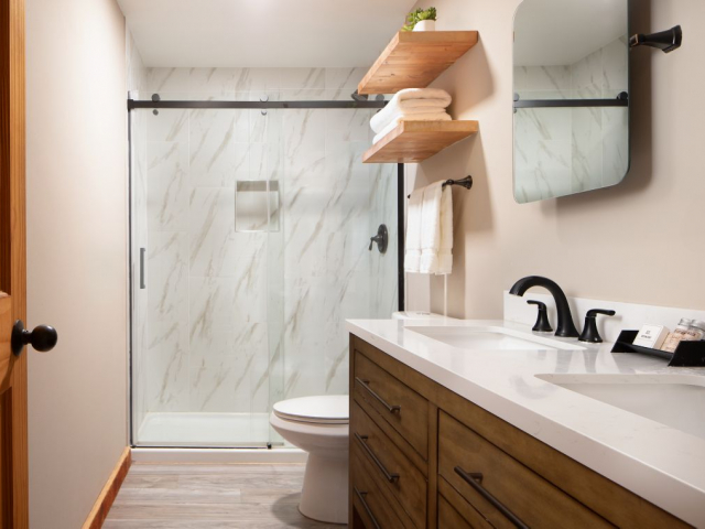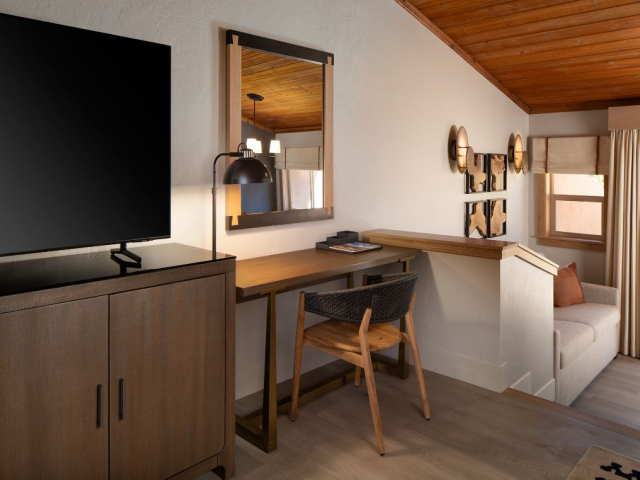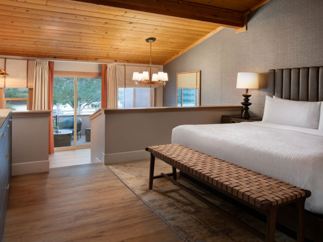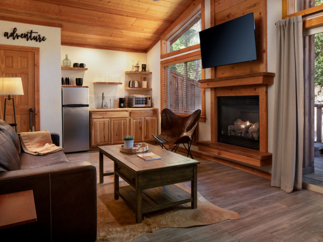 Guests are pampered with a list of amenities that you would expect from a 3-star hotel. The facility has an exercise room, pool and hot tub, tennis courts, and seasonal horseback riding. Guests can choose from four room types all of which will accommodate either four or six guests. All of the rooms have are a variety of amenities including terry cloth bathrobes, satellite television, and internet. There are also ADA and pet-friendly rooms available upon request when booking.